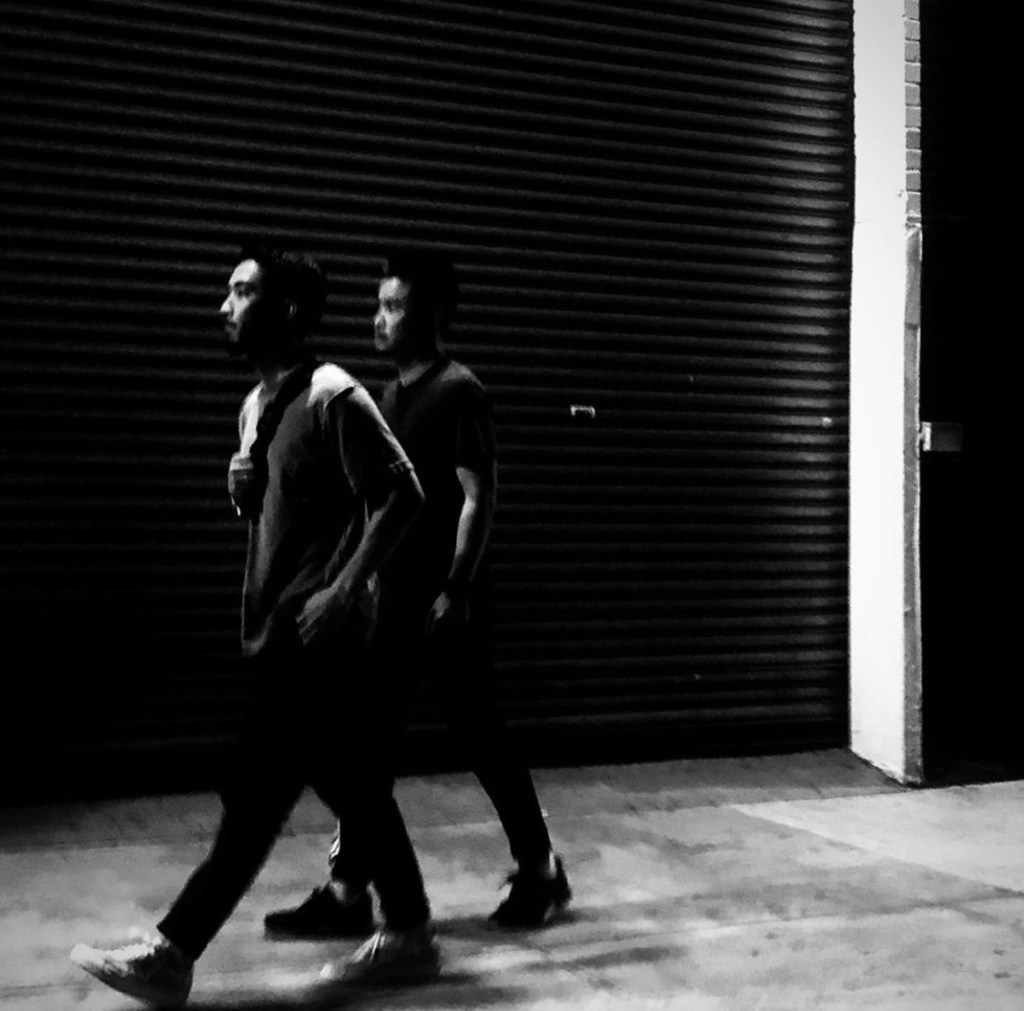 Fast, rhythmic steps; right legs forward, left legs backward. The snap of shoes tapping against the ground, setting the tempo. Hands in their pockets, hidden, looking for comfort. Monotonous thoughts. Mute digressions. In the pitch of the night, the men could be black, white, mixed skin. But they’re humans. From the other side of the street, I can see their bright red yearnings. I glimpse a scarlet pain, a gray discomfort hidden in their march, in their pockets, in their gazes and in their minds. I uncover their thoughts and imagine a mental rainbow of disappointments, obligations, desires, hope. I look again and see nothing. Did they pass me by? Yes. I hear sirens and engines again, and feel the cold. And in this confusion, I walk ahead with the camera in my hands. Thinking of the color that identifies us through our skin, that open or close the doors of life, colors that define us. I choose to photograph in black and white, discoloring appearances. And I go on, imagining humanity and its universes in the colors that really matter.